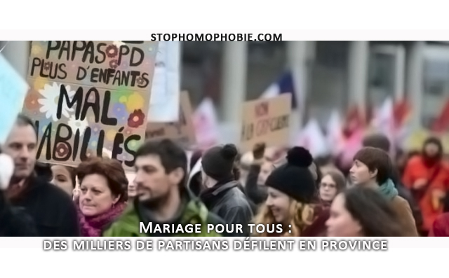 A quelques jours de la manifestation nationale en faveur du « mariage pour tous », dimanche 27 janvier à Paris, la première vague de rassemblements a eu lieu ce samedi après-midi en province. De Marseille à Lille, de Rennes à Strasbourg, les défilés ont concerné une quinzaine de villes à travers la France. Entre tensions et bonne humeur.