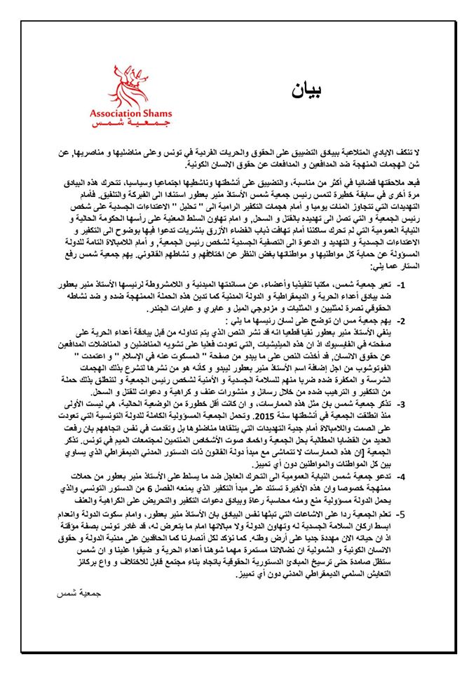 [Communiqué 📣] Me Mounir Baatour, 1er candidat Gay 🏳️🌈 à une élection présidentielle dans le monde arabo-musulman, co-fondateur de #Shams, menacé par 5 fatwas a dû quitter précipitamment la Tunisie 🇹🇳. Il a trouvé refuge en #France entre #Marseille et #Paris. ⤵️ pic.twitter.com/pxx6txHtr8