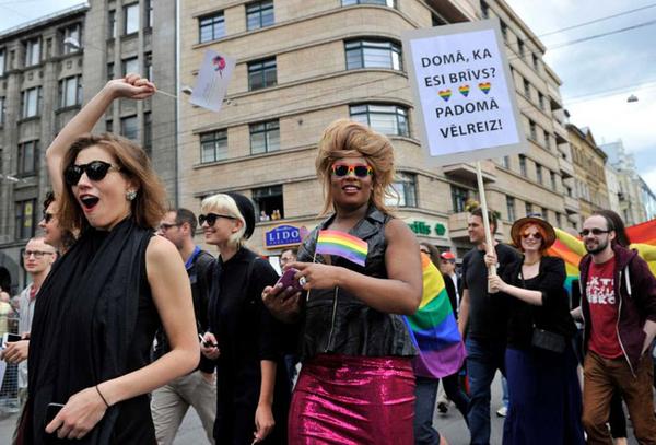 >> Up to 5,000 people have taken part in a high-profile gay pride event in Riga, the capital of Latvia, a former Soviet country.