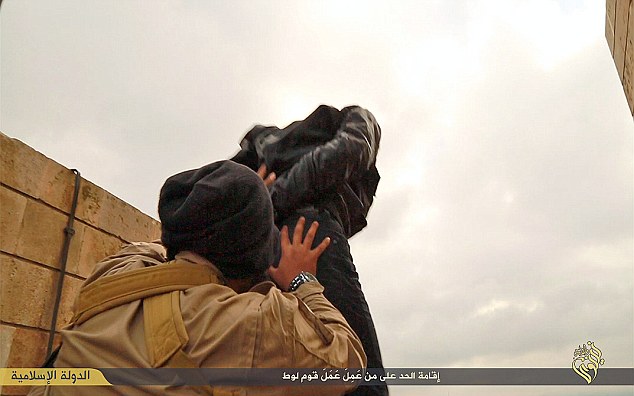 The men were thrown from the roof down to the crowd below in the brutal punishment for being gay.