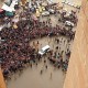 Their blindfolds appear to have partially slipped from their eyes, allowing them to possibly see the surrounding hostile crowd.
