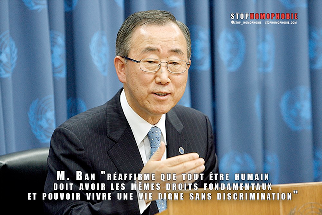 M. Ban « réaffirme que tout être humain doit avoir les mêmes droits fondamentaux et pouvoir vivre une vie digne sans discrimination », ajoutant que « ce concept figure dans la charte de l’ONU, la déclaration universelle des droits de l’homme et la constitution ougandaise« .