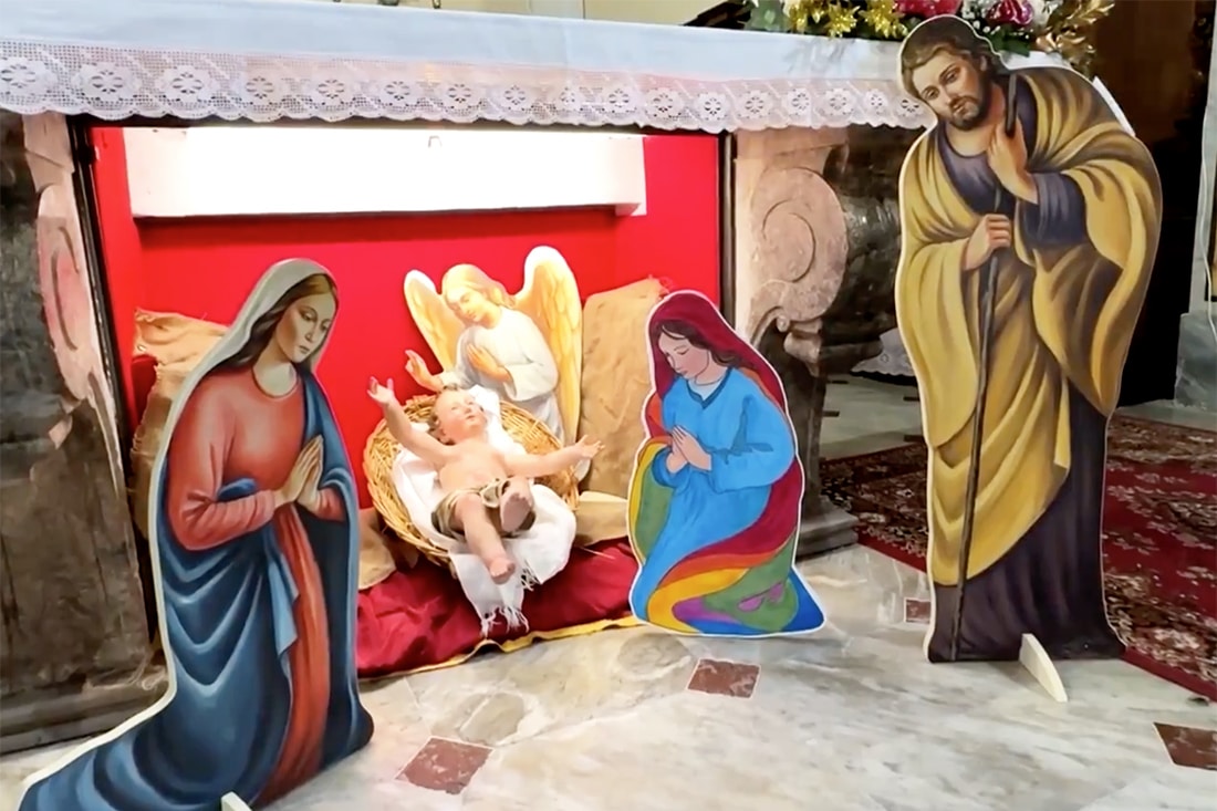 Une « crèche LGBT » représentant deux mamans, deux Maries, sans Joseph, autour de l’Enfant Jésus, installée dans l’église des Saints Pierre et Paul, à Capocastello di Mercogliano, à l’est de Naples, a suscité la fureur des catholiques et politiciens conservateurs italiens qui réclament son retrait.