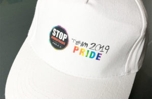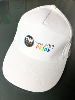 Casquette réglable, type baseball, 100% coton, imprimée du logo STOP « Team Pride 2019 ».
