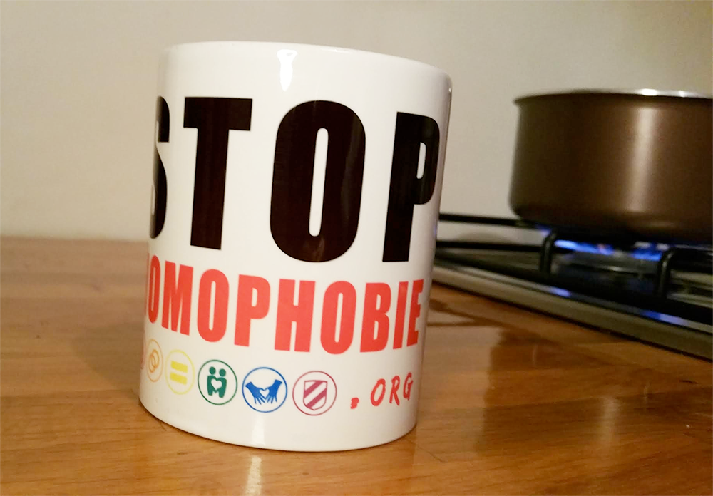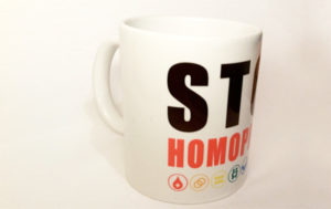 Mug blanc en céramique « logoté » STOP Homophobie.