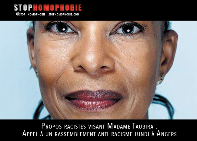 Lors d’un déplacement de Chistiane Taubira à la cour d’appel d’Angers, une jeune adolescente faisant partie d’un groupe d’opposants au mariage homosexuel, réunis à l’extérieur de l’édifice, avait comparé la ministre à une « guenon ».