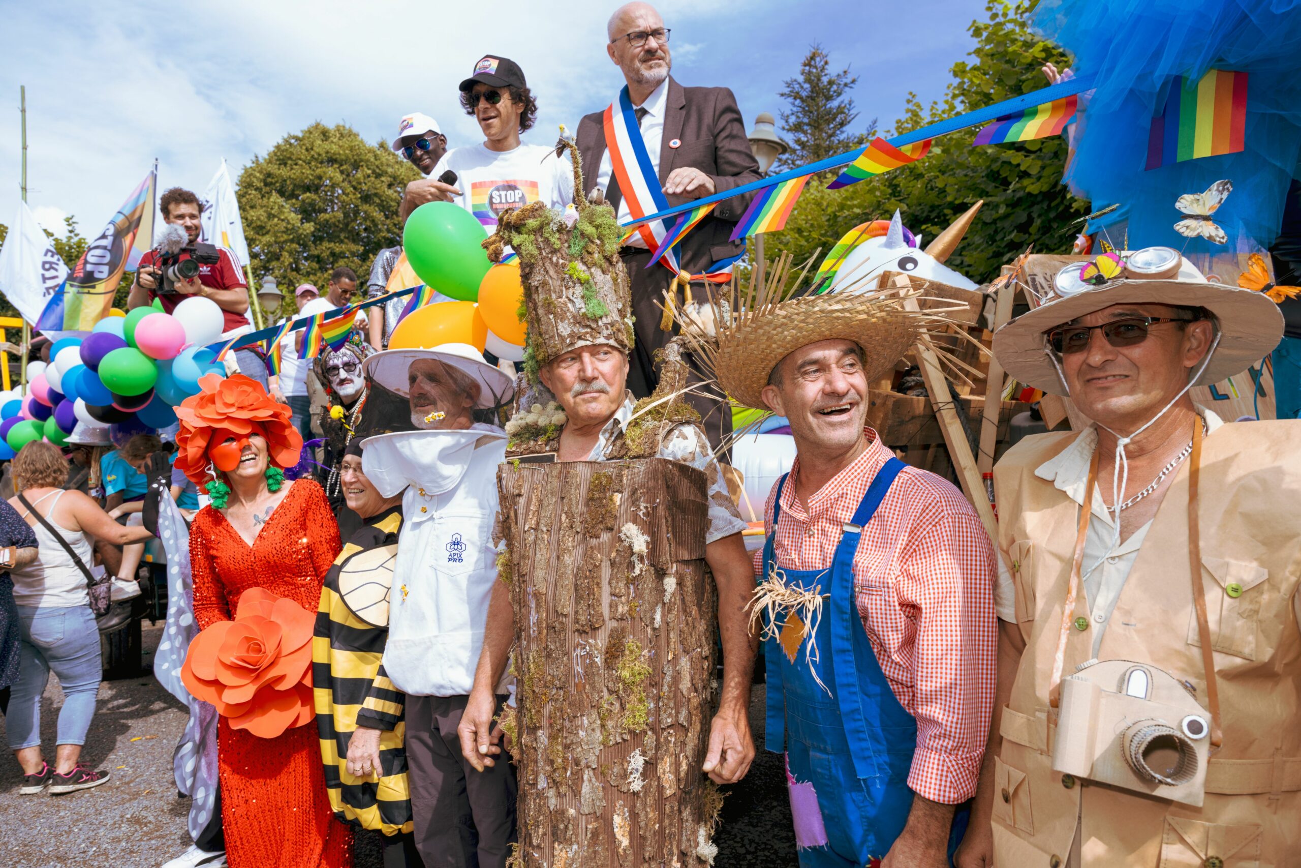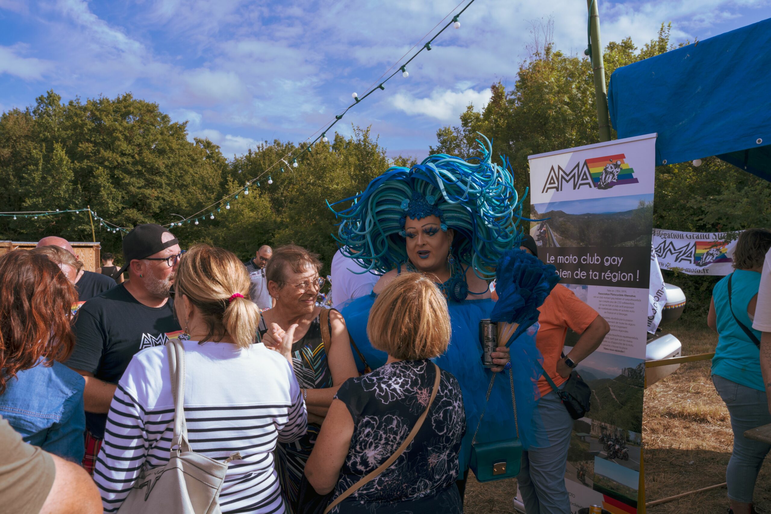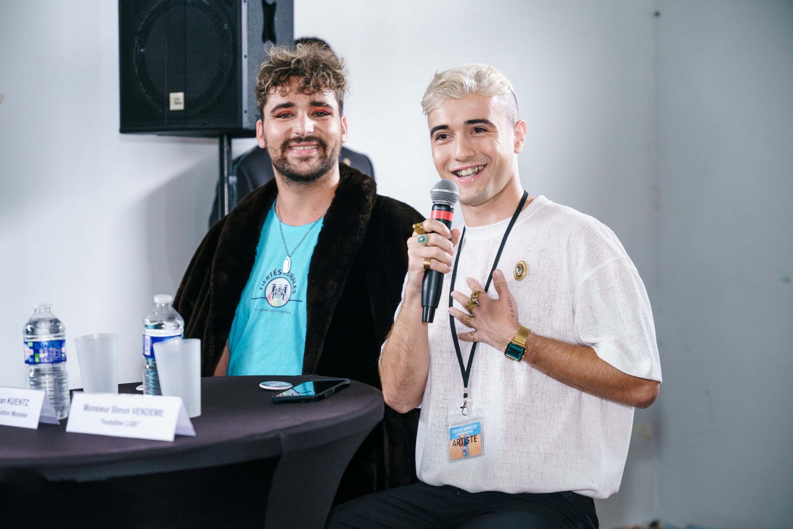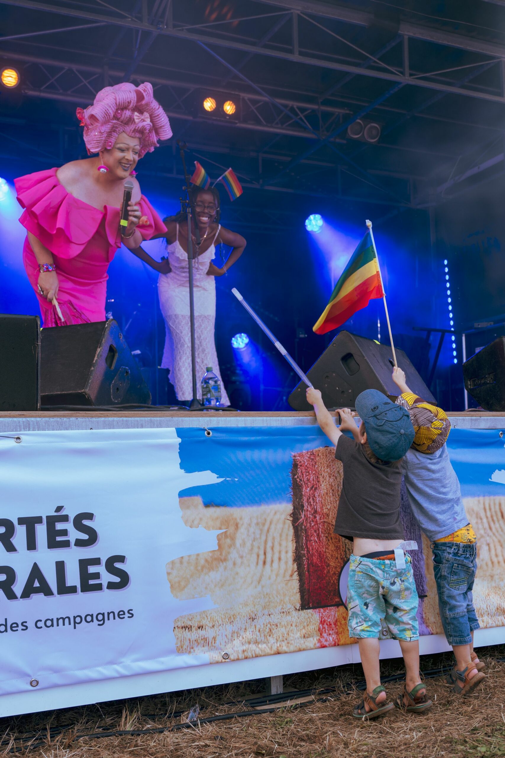 La journée a commencé par une cérémonie de remise des papiers d’identité d’un jeune homme en transition, Léo, que le maire de la commune a accompagné dans ses démarches, suivie d’une conférence sur le harcèlement des jeunes LGBT+ en milieu rural avec les témoignages de Nathan Kuentz, militant au sein de STOP homophobie, et de l’artiste Simon Vendeme, qui a grandi en campagne et subi des pressions homophobes.
