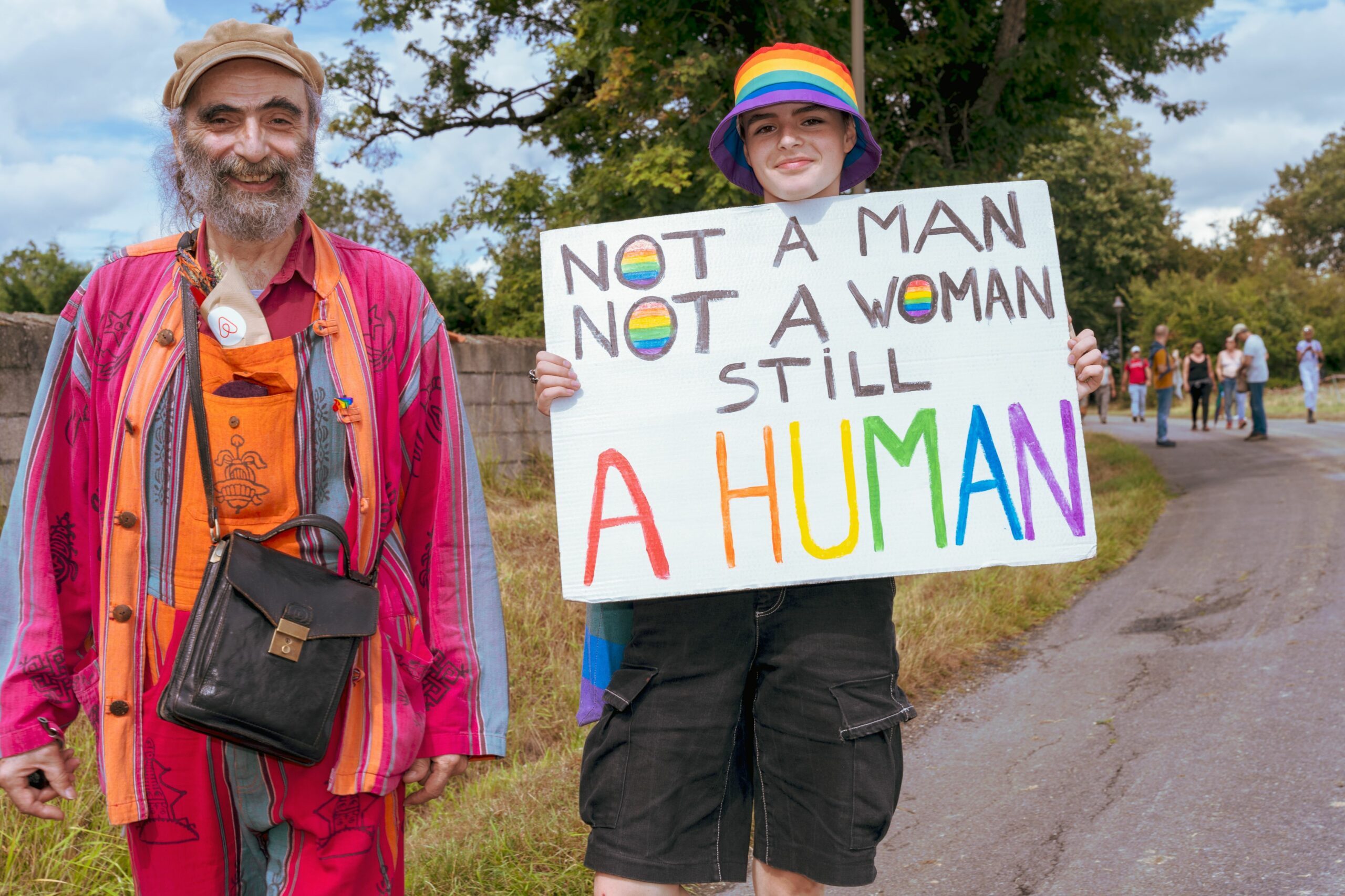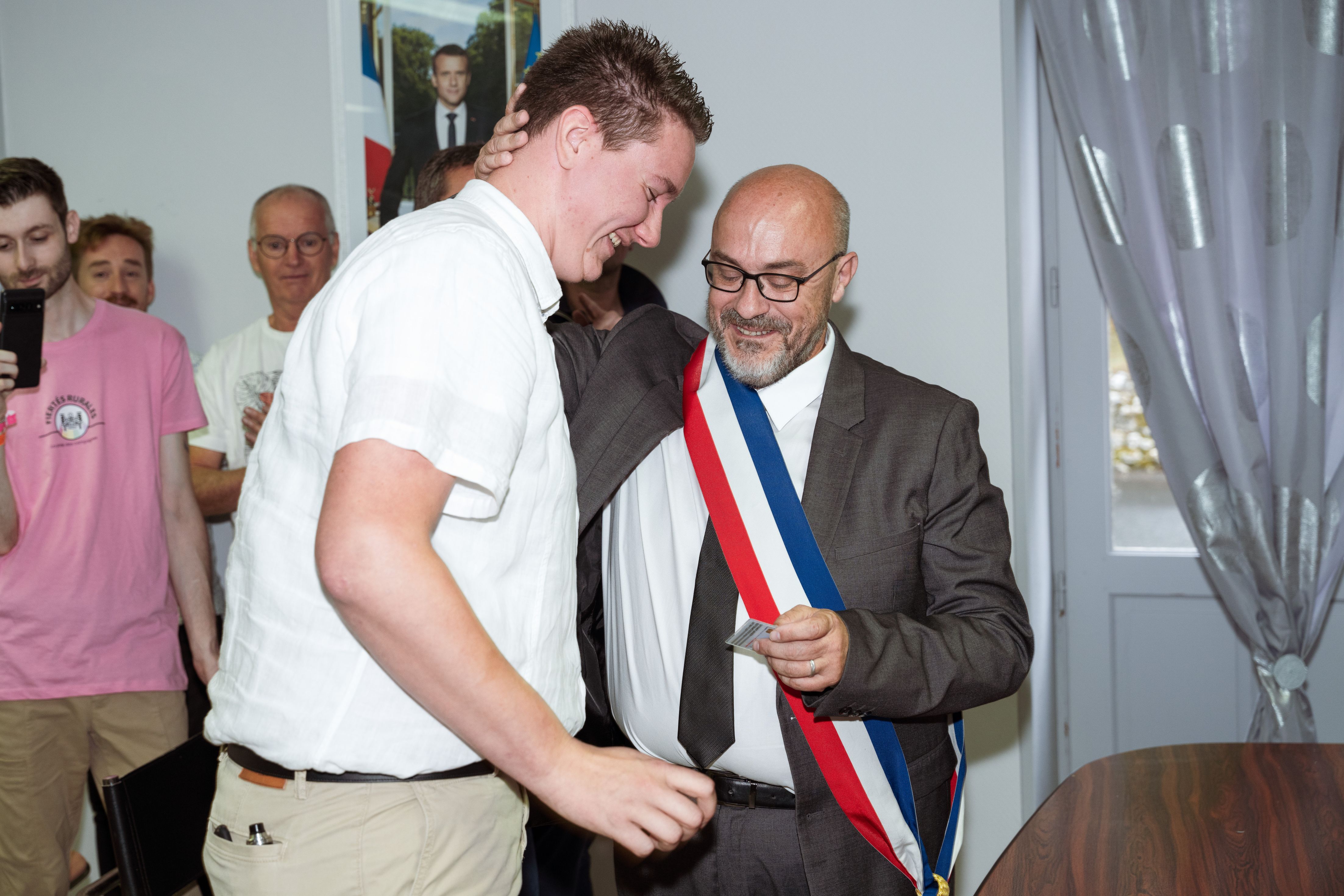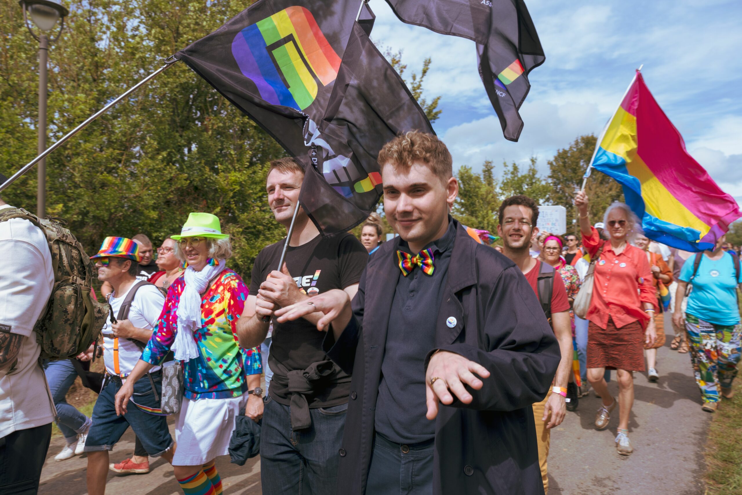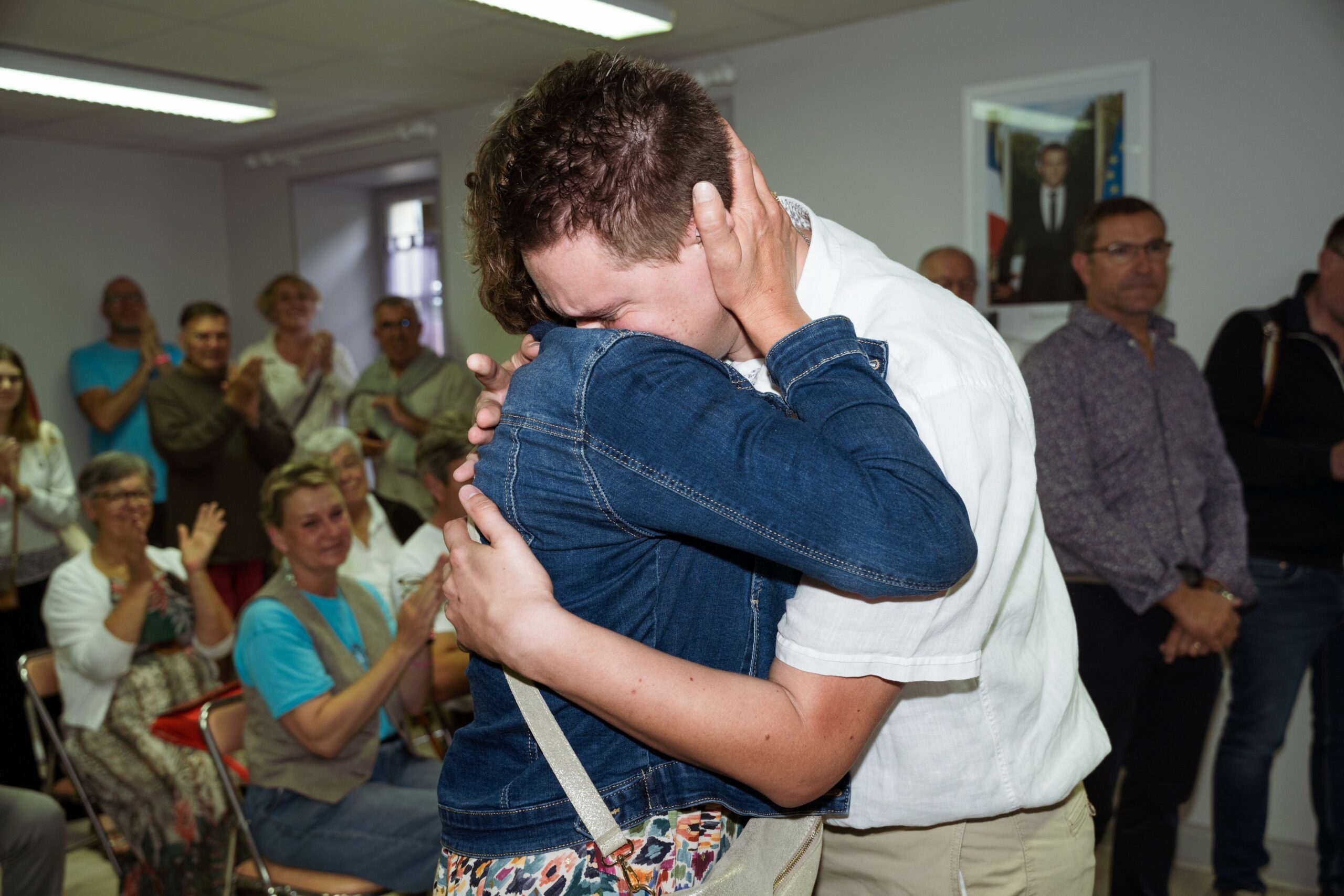 La journée a commencé par une cérémonie de remise des papiers d’identité d’un jeune homme en transition, Léo, que le maire de la commune a accompagné dans ses démarches, suivie d’une conférence sur le harcèlement des jeunes LGBT+ en milieu rural avec les témoignages de Nathan Kuentz, militant au sein de STOP homophobie, et de l’artiste Simon Vendeme, qui a grandi en campagne et subi des pressions homophobes.