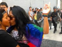 C’est sans doute du jamais-vu dans un Parlement national: des membres du Mouvement cinq-étoiles ont réalisé un kiss-in sur les bancs de la Chambre des députés italienne, jeudi soir. Plusieurs élus de la formation de l’ancien comique Beppe Grillo se sont tournés vers leurs collègues du même sexe pour les enlacer ou les embrasser sur la bouche. D’autres ont brandi des pancartes réclamant «davantage de droits» pour les minorités sexuelles, rapporte TheLocal. L’Italie reste le dernier pays d’Europe occidentale qui n’offre aucune reconnaissances aux couples de même sexe.