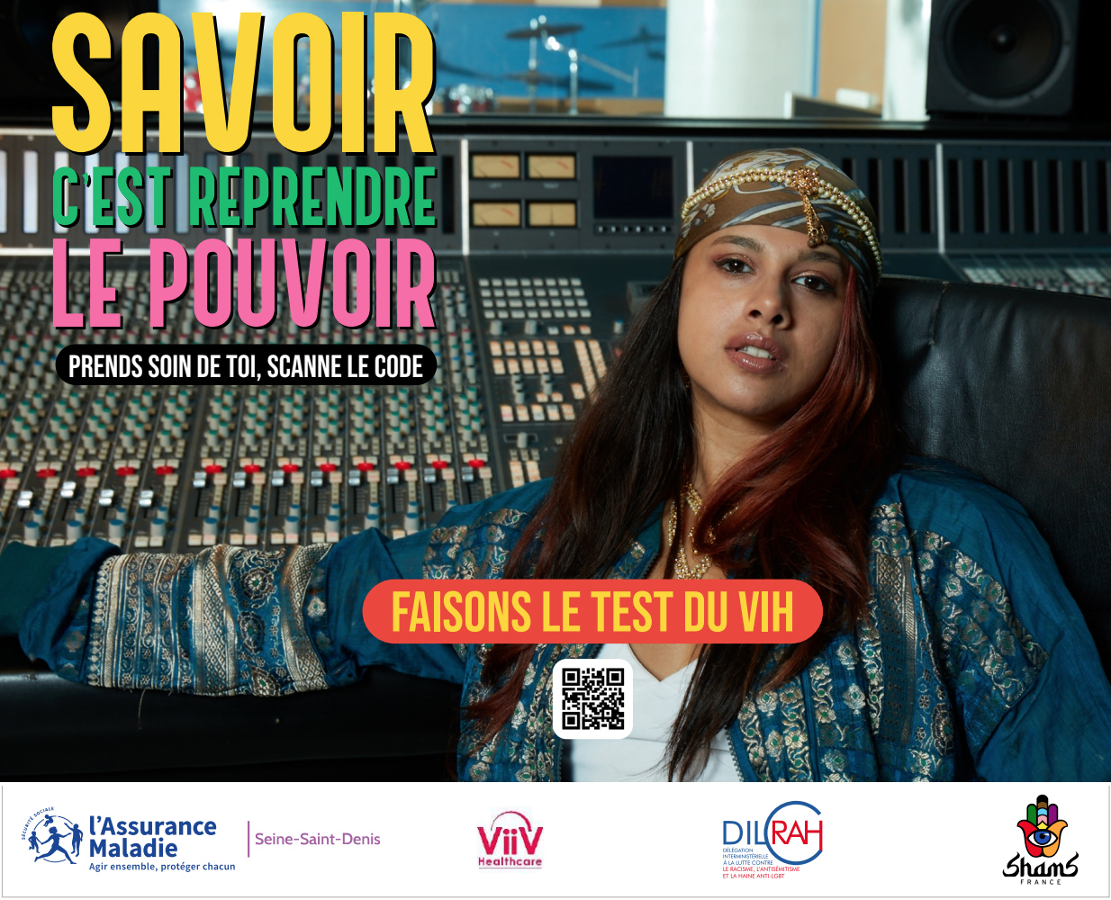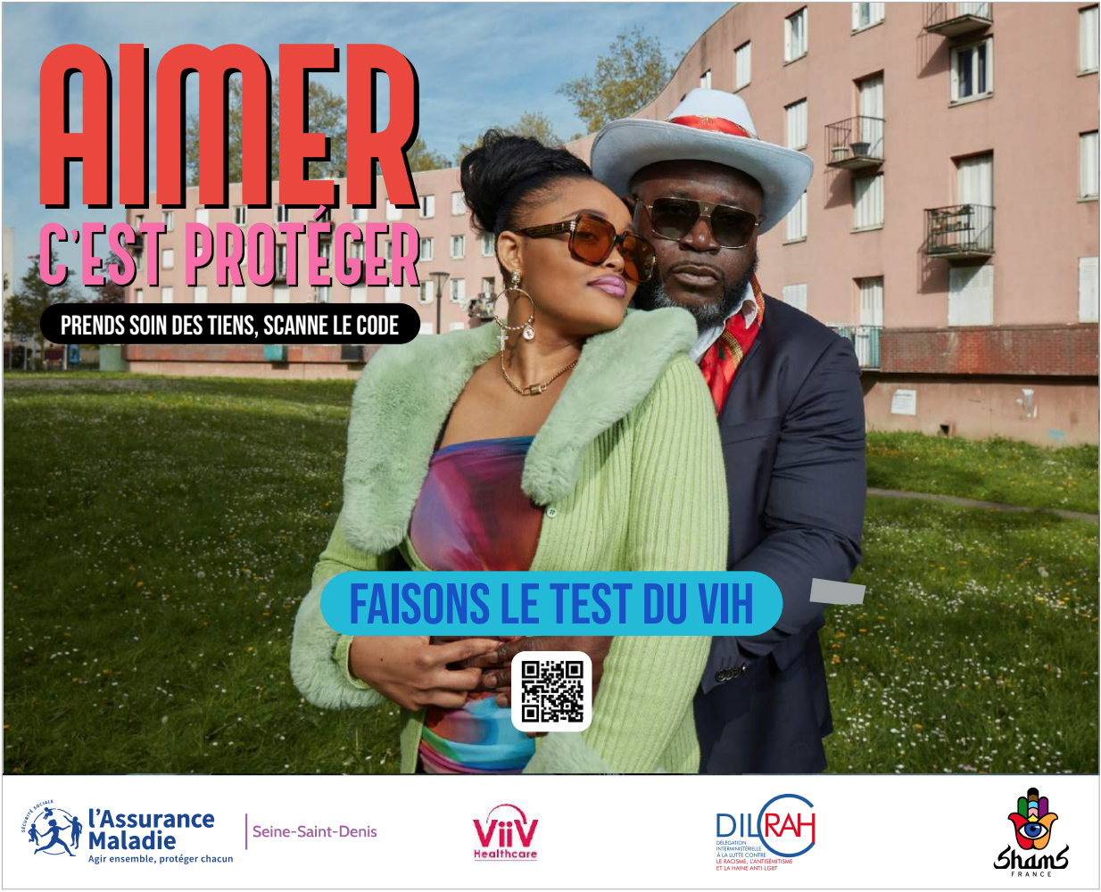 C’est pour ces raisons que Shams a choisi de dévoiler sa campagne ce 17 mai, à l’occasion d’une soirée de sensibilisation, dans le cadre à la Journée internationale contre les lgbtphobies, organisée à la serre Wangari, en plein cœur du grand parc de Saint-Ouen. Un message adressé à la communauté LGBTI du département, « pour célébrer nos fiertés et diversités, mais pour toucher également un plus large public et visibiliser nos luttes et actions ». Shams a d’ailleurs intégré un QRCODE sur les supports, renvoyant aux différents centres du département qui pratiquent ces tests anonymement et gratuitement, « parmi d’autres informations pertinentes sur les droits des personnes et de la santé sexuelle », poursuit Yacine DJEBELNOUAR.
