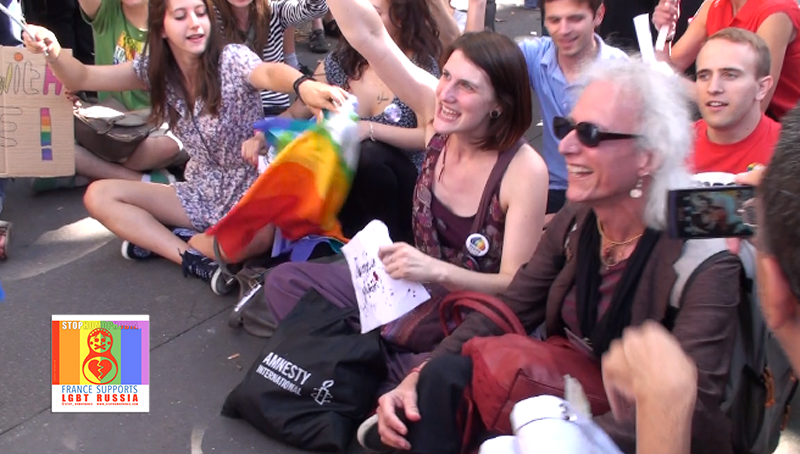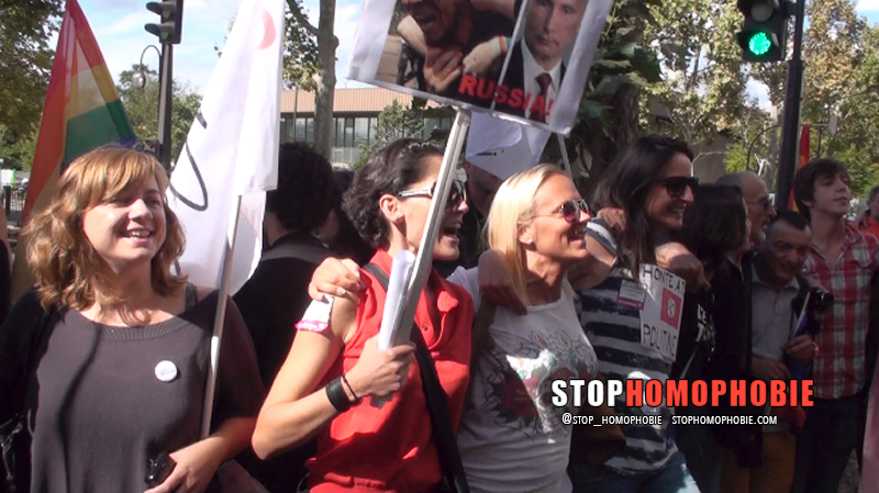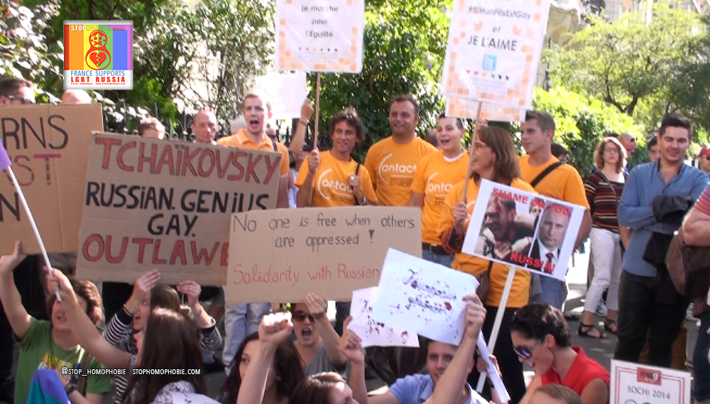 C’est inadmissible que la Russie se serve des JO comme vitrine politique et que ni le CIO ni le gouvernement français ne viennent contester ces lois assassines », a dénoncé « Soeur Maria Culasse », membre des « Soeurs de la Perpétuelle indulgence », des militants lesbiennes, gays, bissexuels et transexuels (LGBT) en habit religieux coloré.
