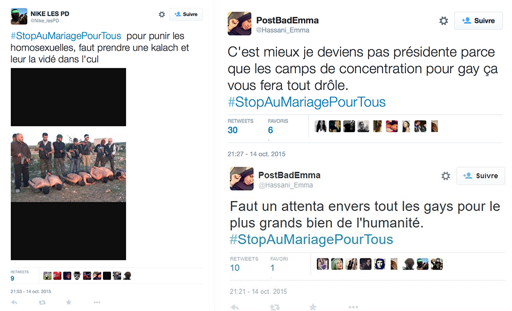 Incitation à la haine, appel au meurtre des homosexuels… c’est sur twitter et propagé avec le hastah #StopAuMariagePourTous.