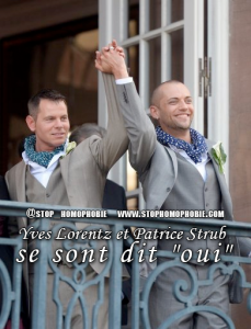 Un peu plus tôt, Yves Lorentz, 41 ans, et Patrice Strub, 31 ans, s’étaient dit « oui » devant le sénateur-maire (PS) de Strasbourg, Roland Ries, sous les hourras et les applaudissements de leurs invités, et en présence de plusieurs adjoints au maire et de nombreux journalistes.