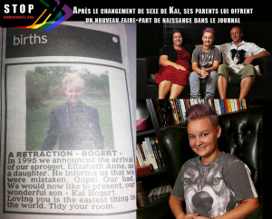 Pour le soutenir dans ce choix délicat du changement de sexe, dans l’Etat du Queensland en Australie, les parents de Kai Bogert, une jeune fille devenue homme, ont rectifié le faire-part de sa naissance qu’ils avaient publié dans leur journal local. Ainsi, dans la rubrique concernée du quotidien « le Courier Mail », ce 2 décembre, on pouvait lire sous l’intitulé « Retractation » :