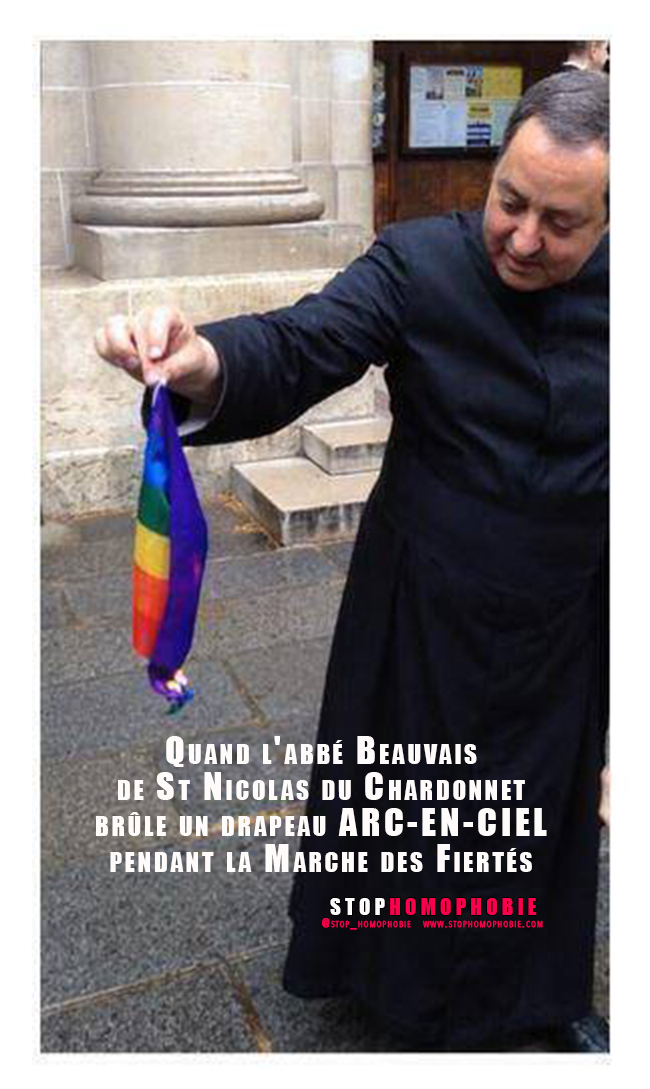 Marche des Fiertés : Quand l’abbé Beauvais de St Nicolas du Chardonnet brûle un drapeau ARC-EN-CIEL