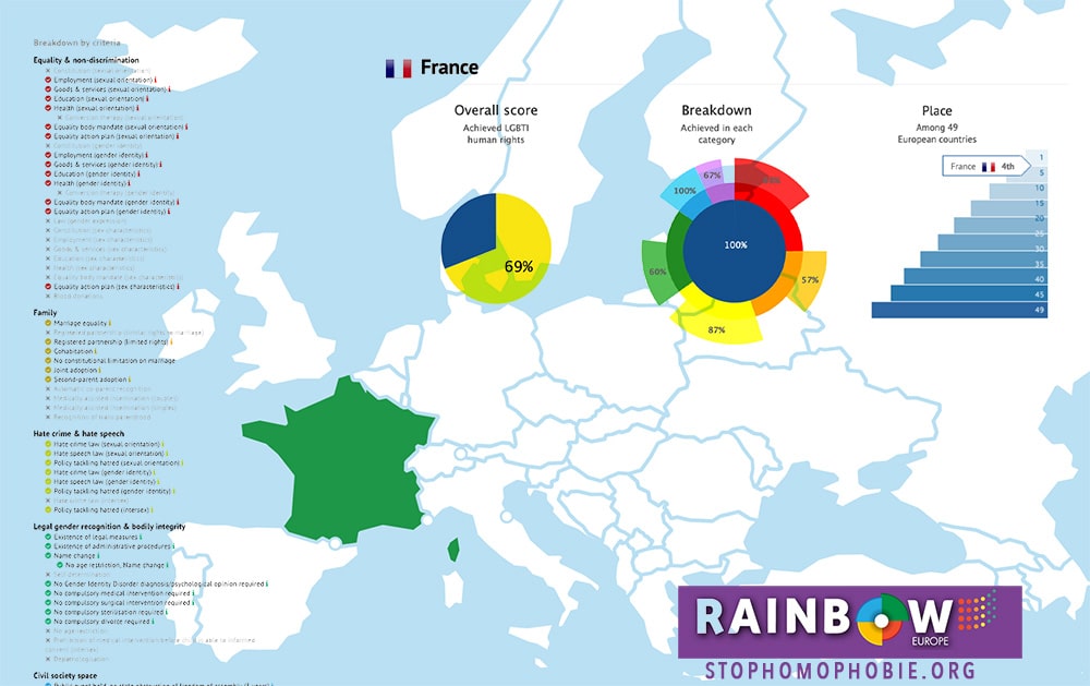 Le Rainbow Index, classement établi chaque année par l’ILGA Europe, association œuvrant à l’élimination des discriminations à l’endroit des personnes LGBT, a classé la France au...
