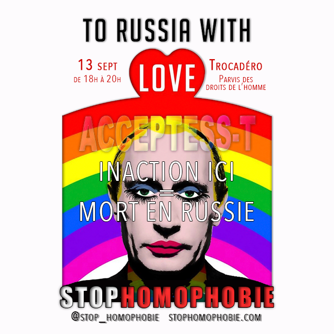 INACTION ICI = MORTS EN RUSSIE : Mobilisation ce #13septembre pour protester contre les #lois #homophobes russes qui répriment la communauté LGBT. Face au silence assourdissant...
