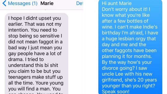 Echanges inédits : Victime de l’homophobie de sa tante, elle partage leurs conversations sur Internet