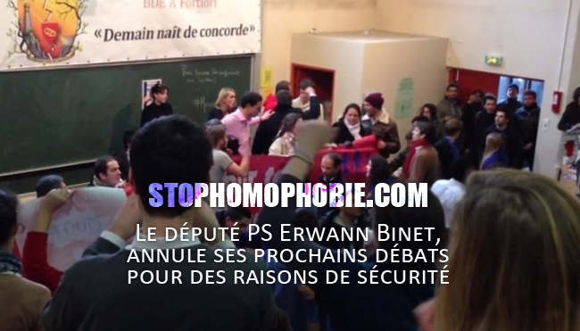 Le député PS Erwann Binet, rapporteur du projet de loi sur le mariage homosexuel, a annoncé samedi qu’il annulait ses prochains débats pour des raisons de...