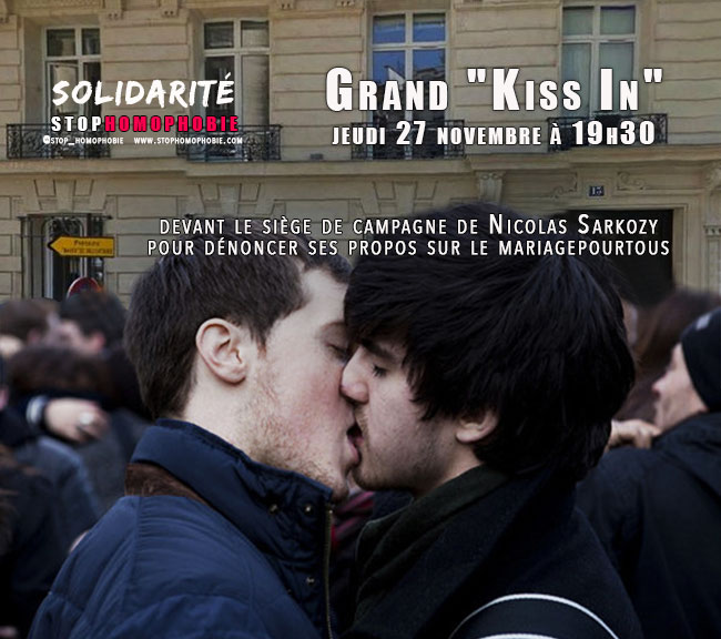 anti-égalité, couples homosexuels, Docteur-Lancereaux, kiss-in, Mariage pour tous, Nicolas Sarkozy