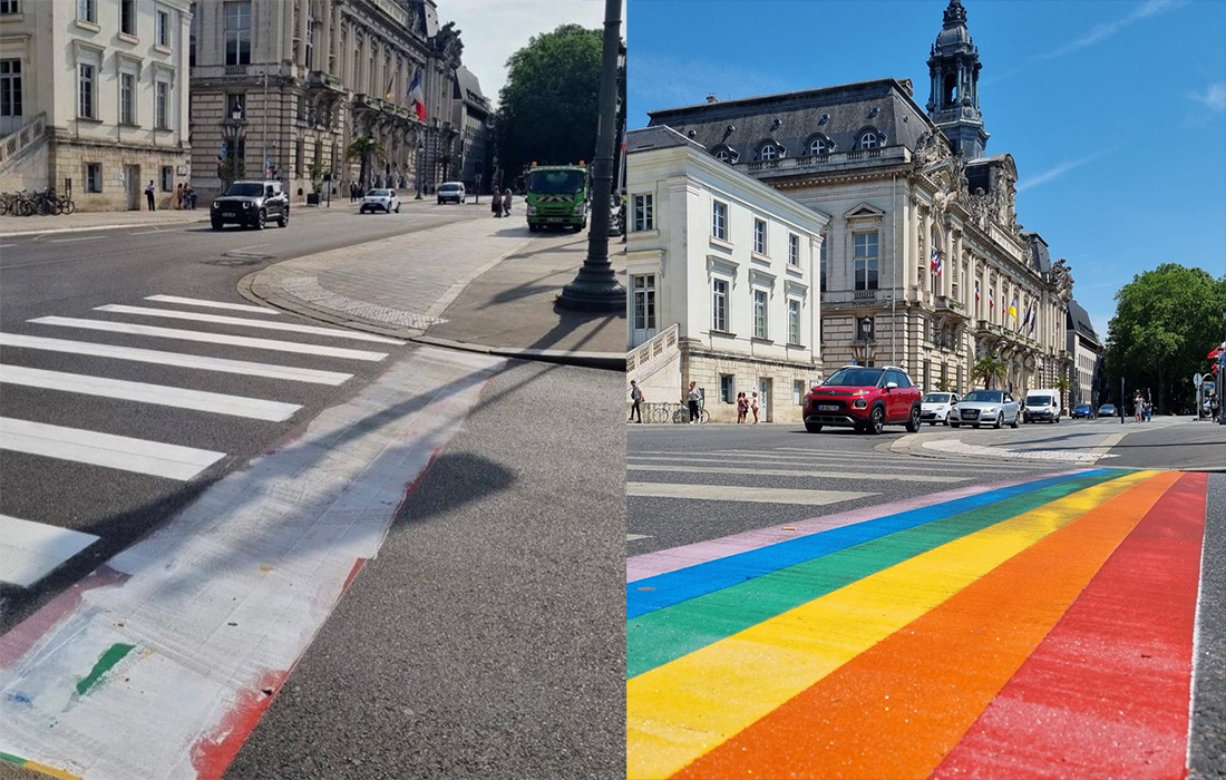 Aude : la ville de Bram dépose plainte après la dégradation d’un de ses passages piétons arc-en-ciel