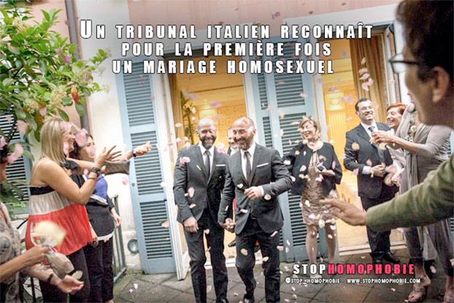 >> Il tribunale di Grosseto fa registrare le nozze gay: primo caso in Italia Un tribunal italien a validé mercredi 9 avril un mariage homosexuel célébré...
