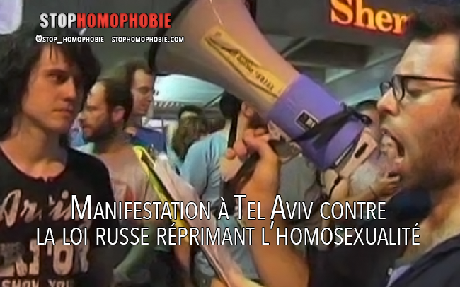La communauté gay se mobilise un peu partout dans le monde, comme ici en Israël, pour dénoncer une loi russe punissant la “propagande homosexuelle” devant des...