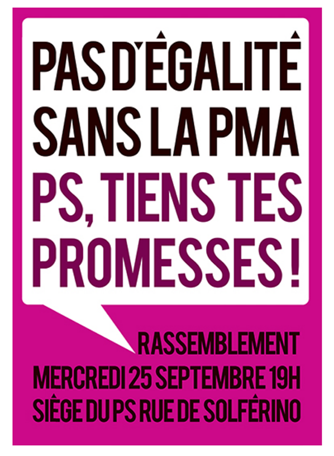 PS, tiens tes promesses ! Pour obtenir la PMA, Oui Oui Oui manifeste le 25 septembre rue de Solférino. Face aux mensonges du gouvernement sur la...