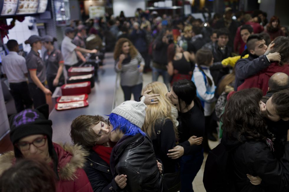 Madrid : Kiss-in de masse dans un Burger King pour protester contre l’expulsion d’un couple homosexuel