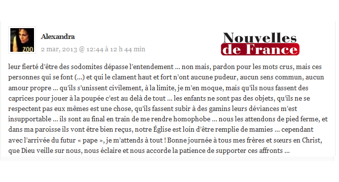 « Nouvelles de France » : Manipuler l’info pour davantage de haine et d’homophobie?!