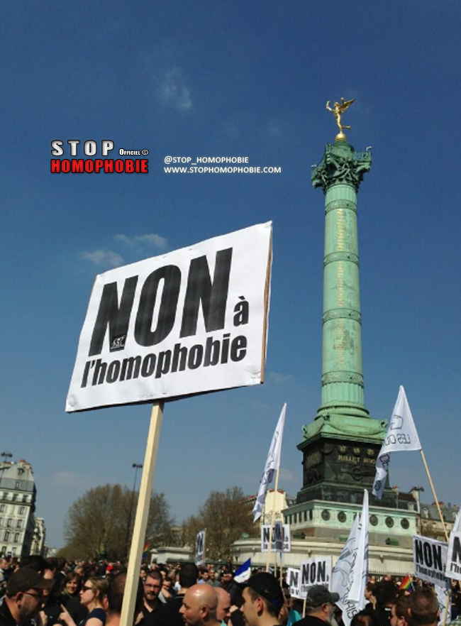 Manifestation pro mariage pour tous : Loin de la haine homophobe, nous sommes a la Bastille pour célébrer l’égalité et l’amour.