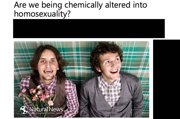 People Vidéo Intox d’homophobe : «L’homosexualité, causée par un pesticide» Revue du Web 22/07/2015 C'est ce qu'affirme une certaine Sarah J. Barendse sur un blog de «santé naturelle».