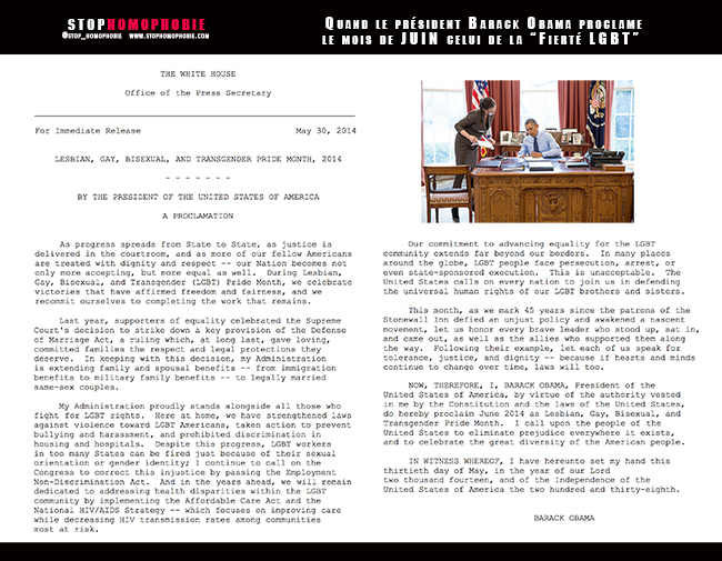 >> Obama proclaims June LGBT Pride Month Mise en avant d’un certain nombre de victoires pour les droits de l’homme, y compris sur le propos de...