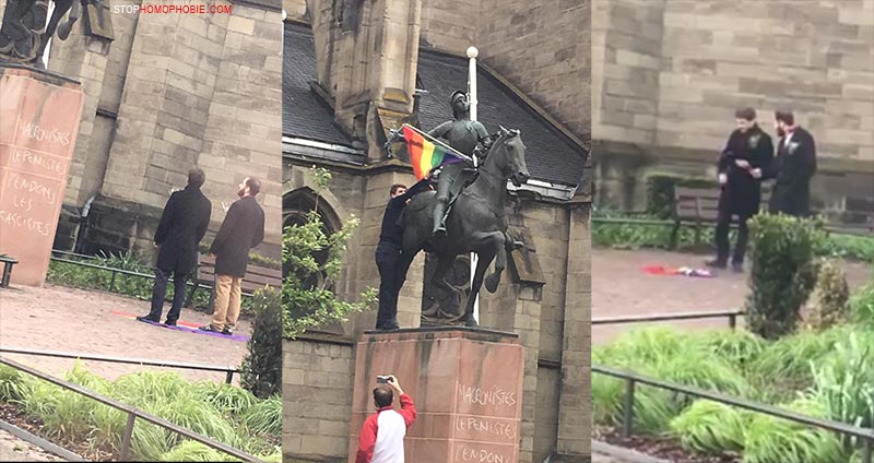 Strasbourg : un drapeau arc-en-ciel décroché de la statue de Jeanne-d’Arc et incendié par deux individus (VIDEO)