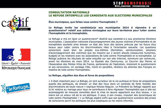 Le Refuge et le Collectif des Associations Étudiantes LGBT d’Ile-de-France (CAELIF) organisent un débat entre les principaux candidats aux élections municipales de Paris le 27 février...