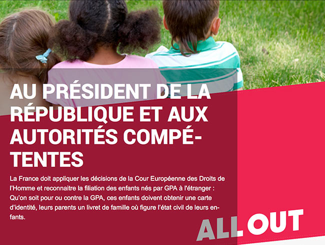 Pour les enfants nés par GPA : Pétition solidaire avec ADFH et Allout