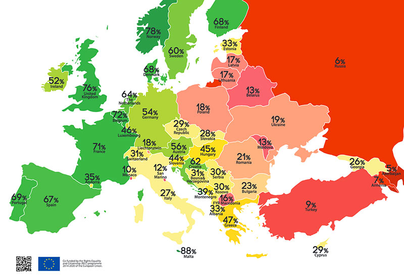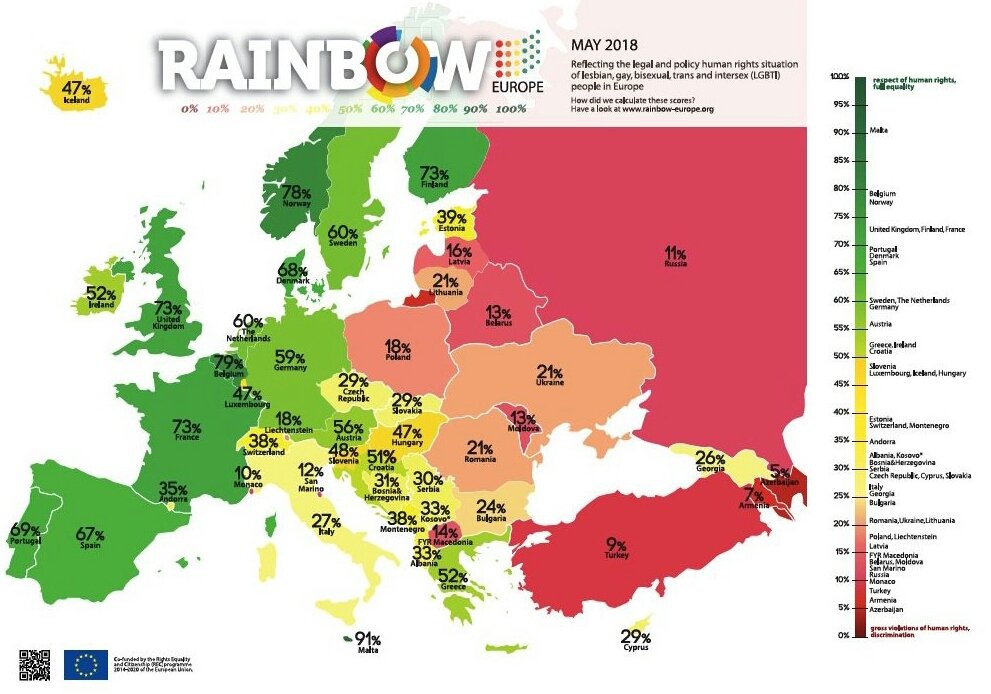 Rainbow Europe Map 2018 : La France sixième du classement sur 49 pays, mais le bilan reste « contrasté »