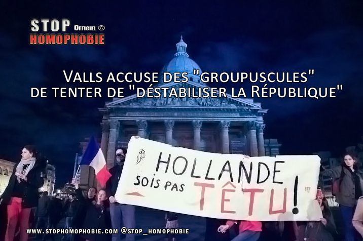 Manuel Valls, a estimé mardi que certains « groupuscules » opposés au mariage homosexuel cherchaient par leurs « actions violentes » à « déstabiliser la République » et qu’il était « temps de...