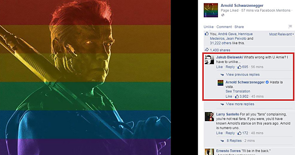 Si Schwarzy était opposé à l'ouverture du mariage quand il était gouverneur de Californie, il a depuis changé d'avis sur la question.