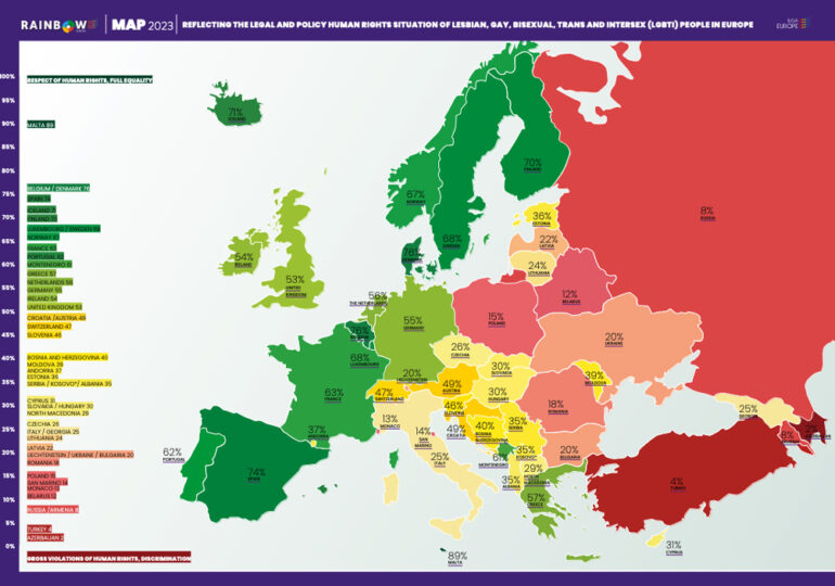 Droits LGBT+ : La France chute de la 7e à la 10e place du classement 2023 d’ILGA-Europe