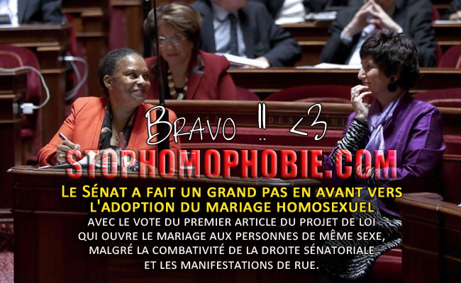 Christiane Taubira, homosexualite, Jean-Pierre Chevènement, loi Taubira, mariage aux personnes de même sexe, mariage homosexuel, sénat, ump