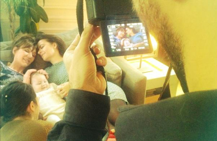 Solidarité : Quand Cécile Duflot, enlaçant un bébé, pose en couple avec Virginie Lemoine pour lutter contre l’homophobie :)