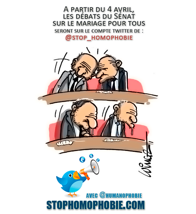 A partir du 4 avril, les débats du Sénat sur le mariage pour tous seront sur le compte twitter de @stop_homophobie