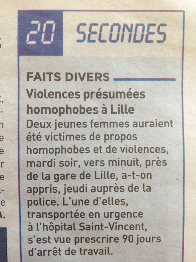 Violences présumées homophobes à Lille !