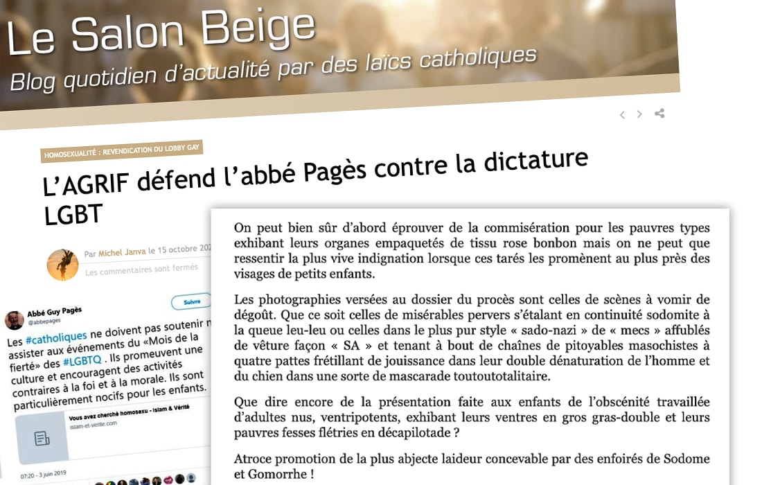 Plainte contre l’AGRIF et « le Salon Beige » pour injures LGBTphobes
