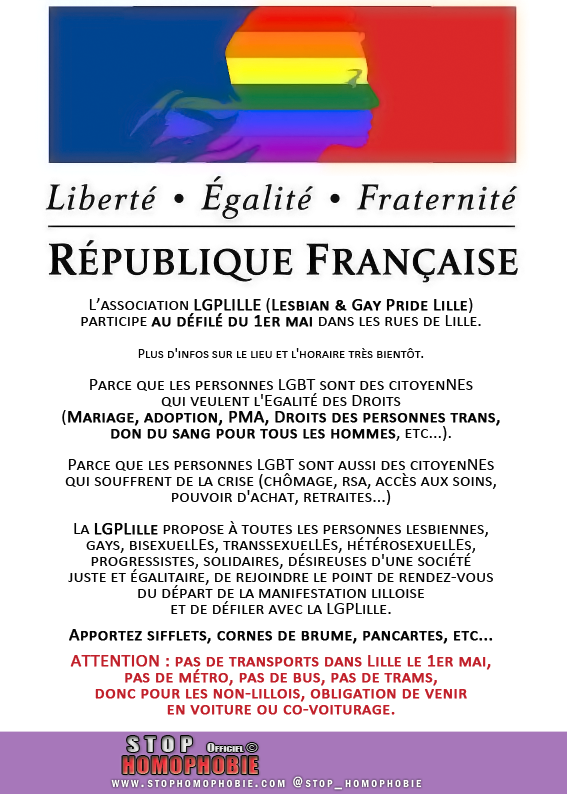 L’association LGPLILLE (Lesbian & Gay Pride Lille) participe au défilé du 1er mai dans les rues de Lille.