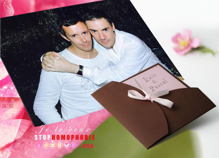 Actions Assos. LGBT France Stop Homophobie Nous sommes très heureux de vous annoncer les noces de Loïc et son compagnon Pascal Stop Homophobie 21/08/2015 Engagés à nos côtés, les deux tourtereaux sont pacsés depuis 13 ans et ont choisi de se marier ce 22 août.