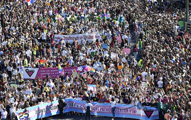 Enorme défilé ce samedi dans la capitale espagnole, où il y a 40 ans avait déjà lieu la première manifestation de revendication des droits LGBT.