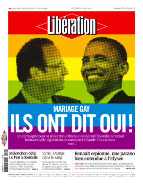 La déclaration de Barack Obama, en campagne pour sa réélection en novembre, rejoint la promesse de François Hollande de rendre légale l’union entre homosexuel(le)s.