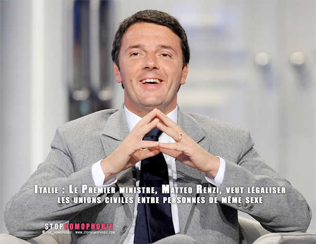 Italie : Le Premier ministre, Matteo Renzi, veut légaliser les unions civiles entre personnes de même sexe